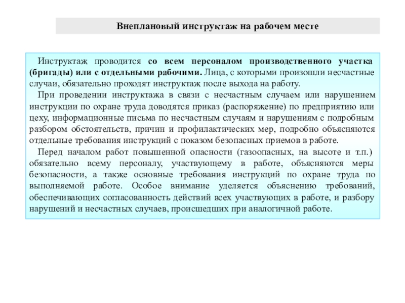 Инструктаж начинается с ознакомления с приказами и распоряжениями, информационными письмами, направленными на предупреждение несчастных случаев и нарушений.