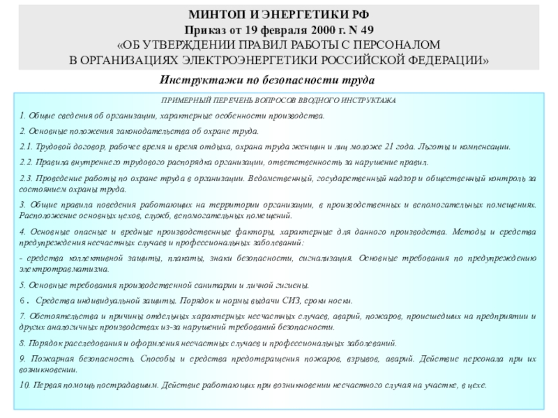 ПРИМЕРНЫЙ ПЕРЕЧЕНЬ ВОПРОСОВ ВВОДНОГО ИНСТРУКТАЖА