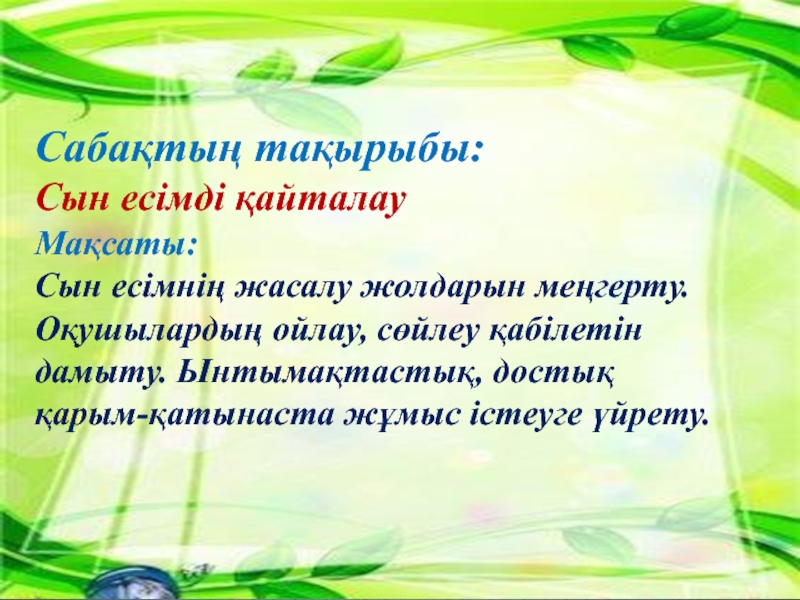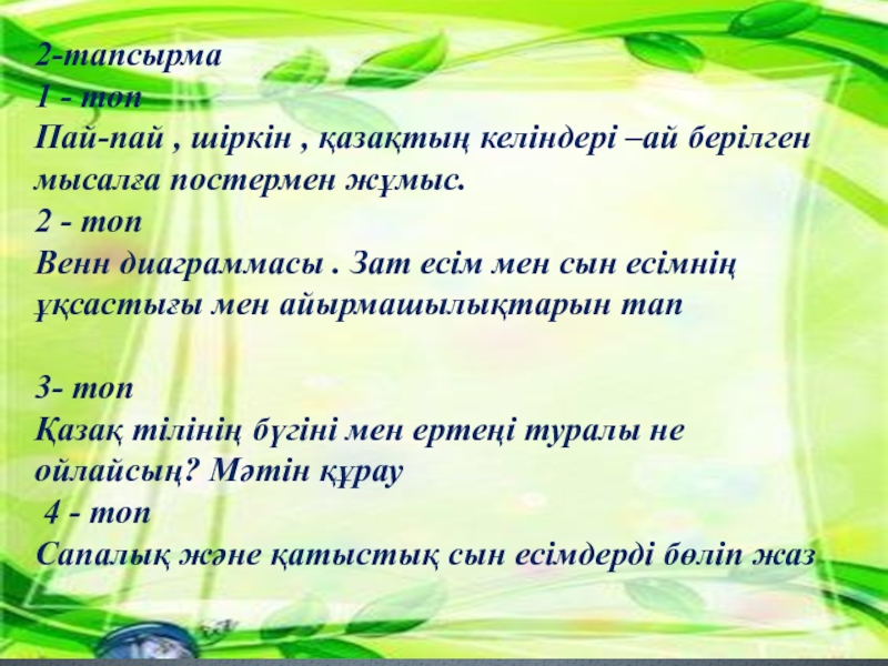 4-төрт сөз, мағынасына байланысты сөйлем.