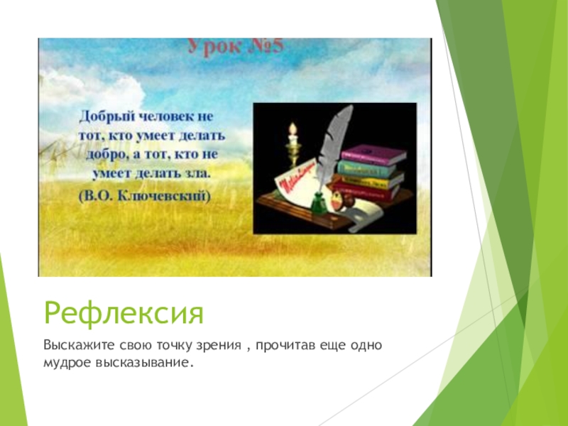 РефлексияВыскажите свою точку зрения , прочитав еще одно мудрое высказывание.