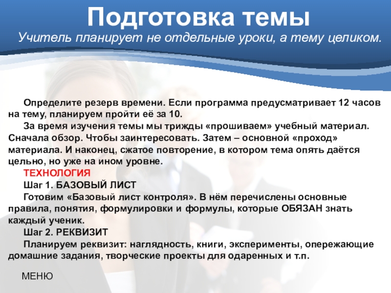 Определите резерв времени. Если программа предусматривает 12 часов на тему,