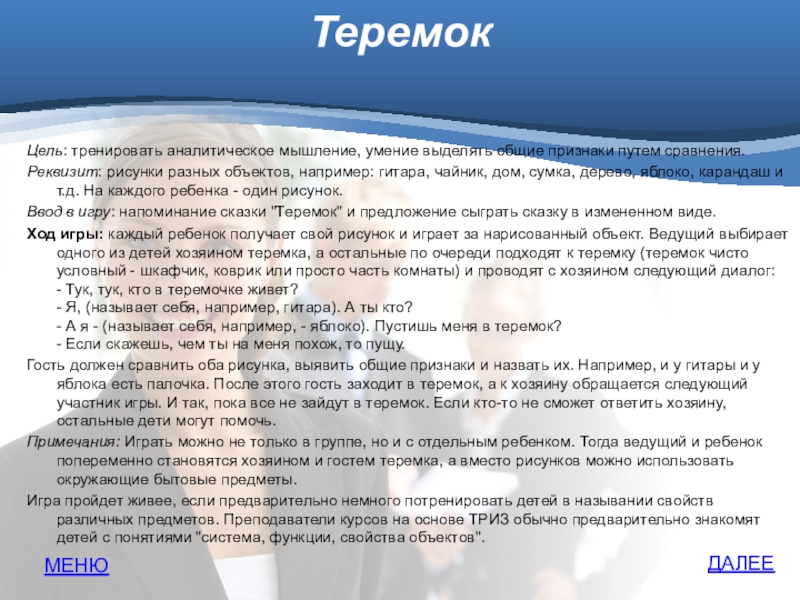 Е.В.Андреева, С.В.Лелюх, Т.А.Сидорчук, Н.А.Яковлева. Творческие задания Золотого ключика. / http://www.trizminsk.org/e/prs/233021.htm