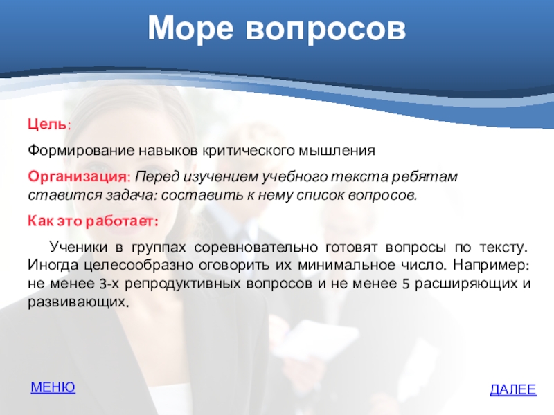 Источник: Загашев И.О., Заир-Бек С.И. Критическое мышление. Критическое мышление: технология развития. – СПб: Альянс-Дельта, 2003.