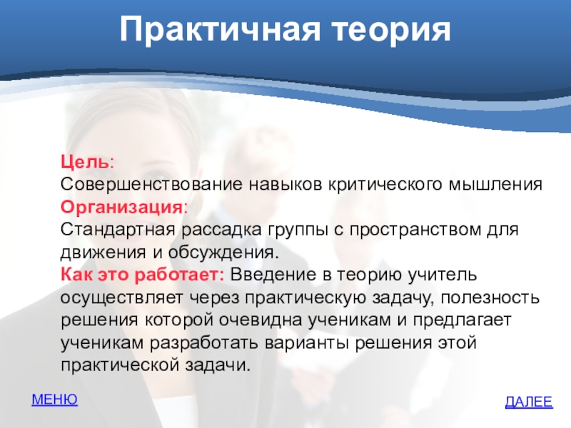 лога: обсуждение, дебаты, сотрудничество, совместное построение знаний. Социально-конструктивистское обучение также приводит к интеграции навыков и глубокому пониманию.