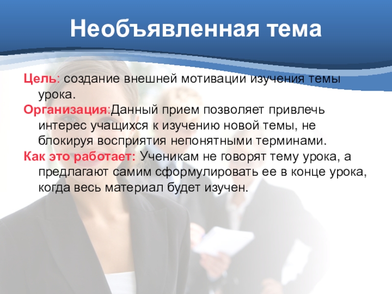 Планируя тему, ставьте себе исследовательскую цель. Например, опробовать какой-то новый для себя приём. Это главный способ профессионального роста.