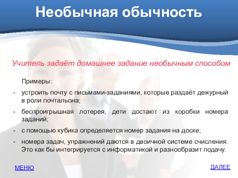 Слайд 168Учитель задаёт домашнее задание необычным способом.