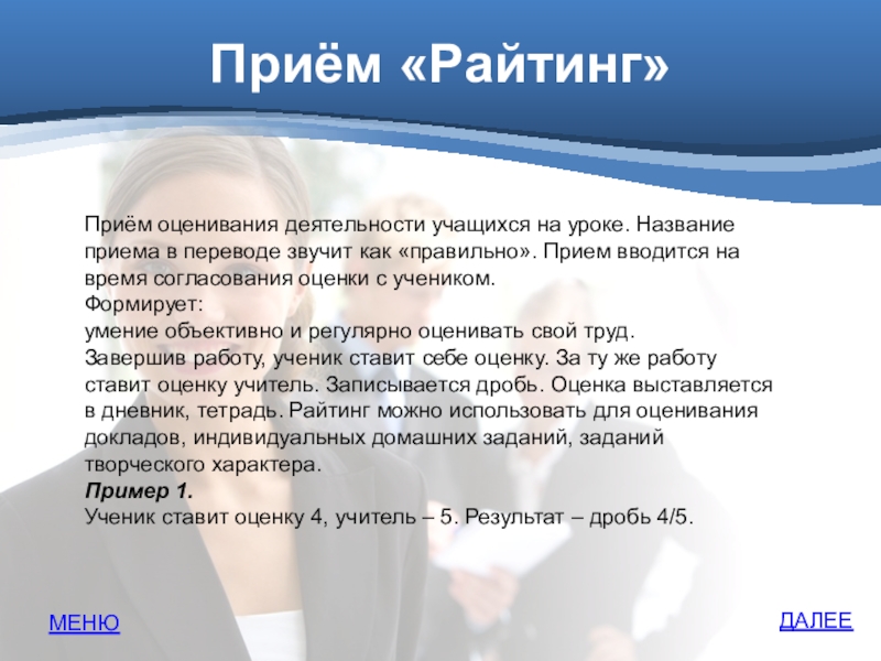 Приём оценивания деятельности учащихся на уроке. Название приема в переводе