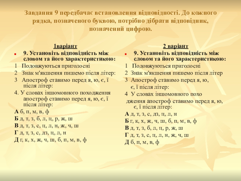 9. Установіть відповідність між словом та його характеристикою:
