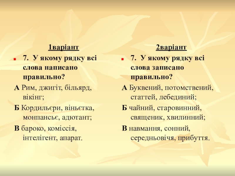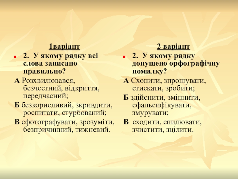2. У якому рядку допущено орфографічну помилку?