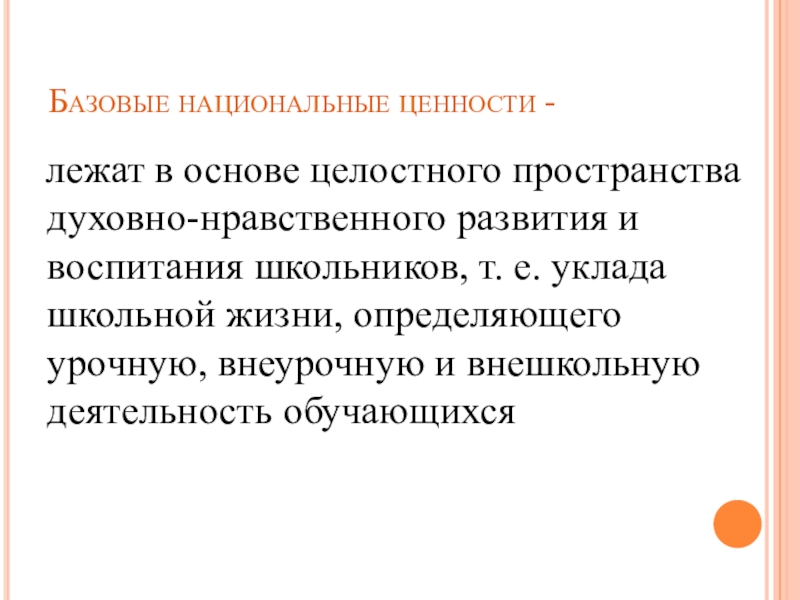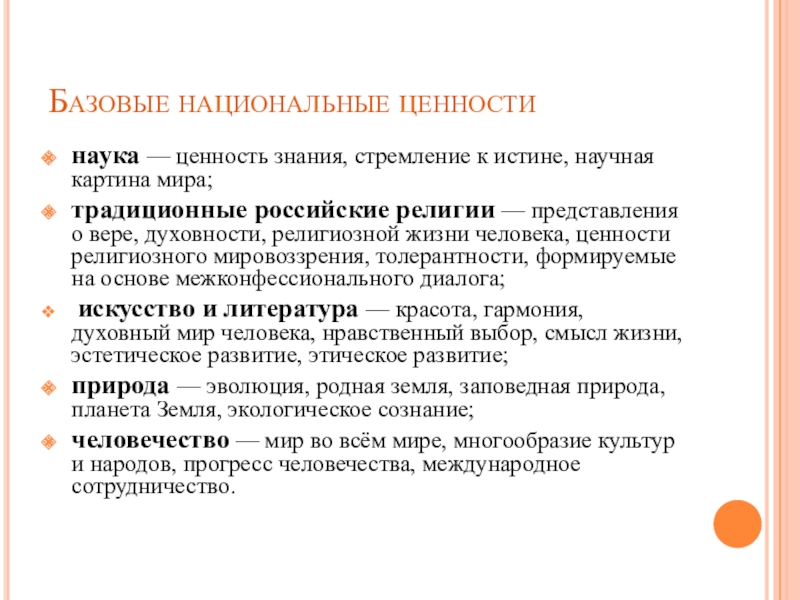 обучающимся базовых национальных ценностей, имеющих иерархическую структуру и сложную организацию.