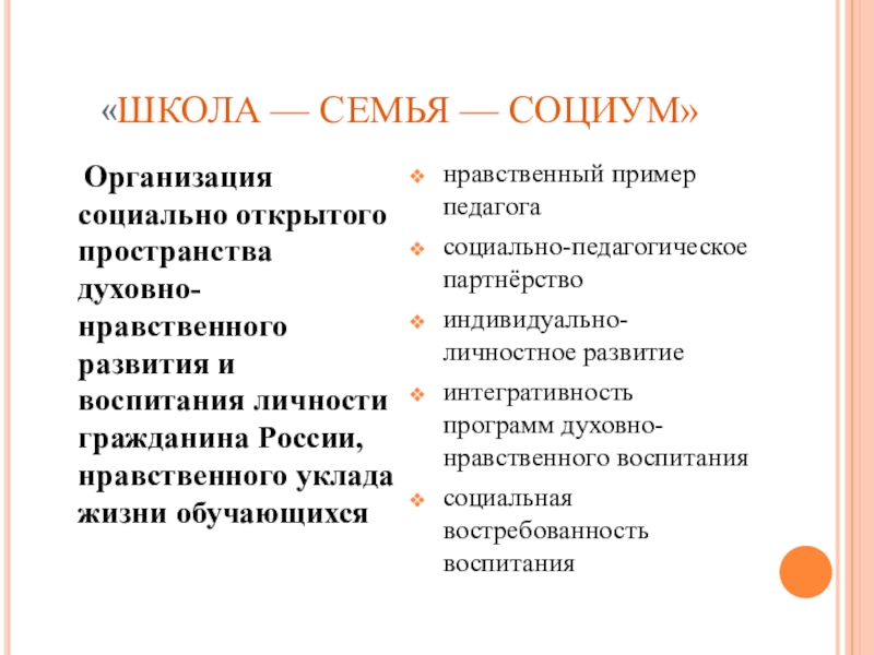 Слайд 11«ШКОЛА — СЕМЬЯ — СОЦИУМ»