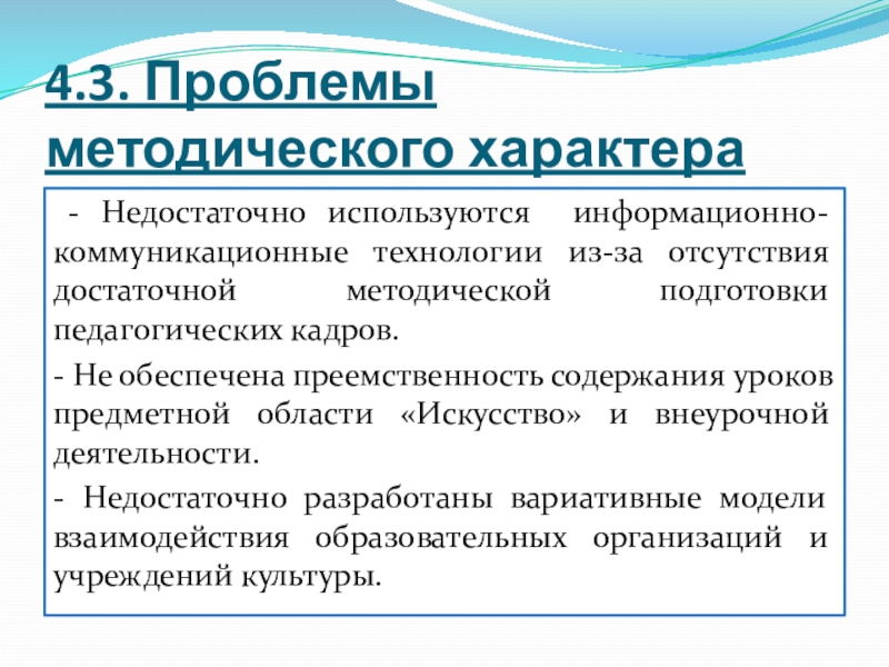 - Недостаточно разработаны вариативные модели взаимодействия образовательных организаций и учреждений культуры.