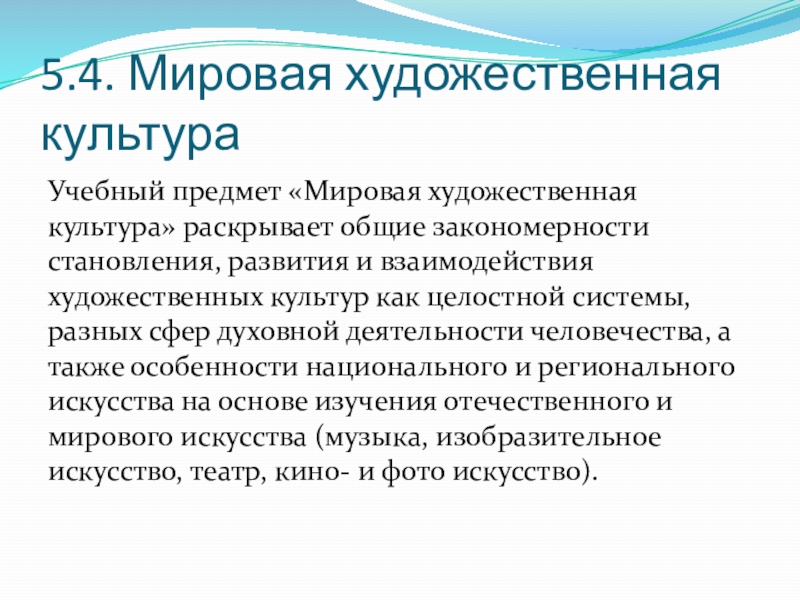 Учебный предмет «Мировая художественная культура» раскрывает общие
