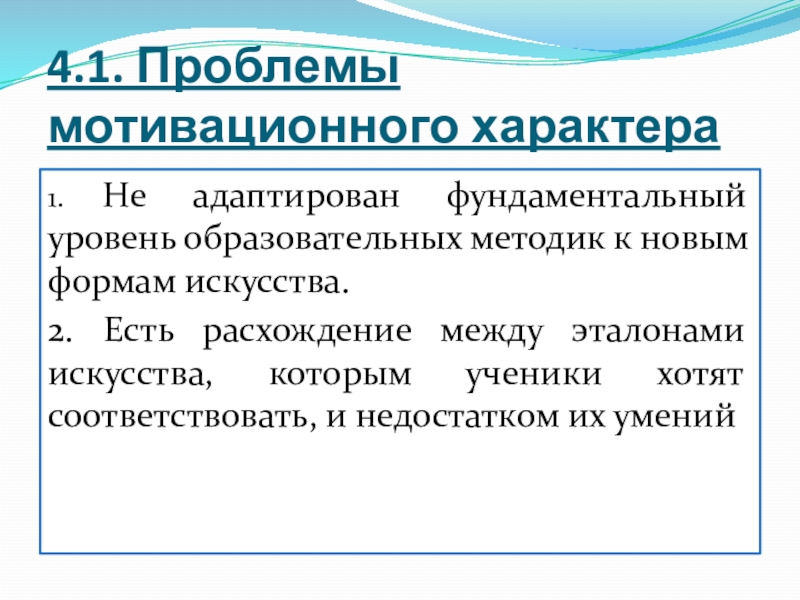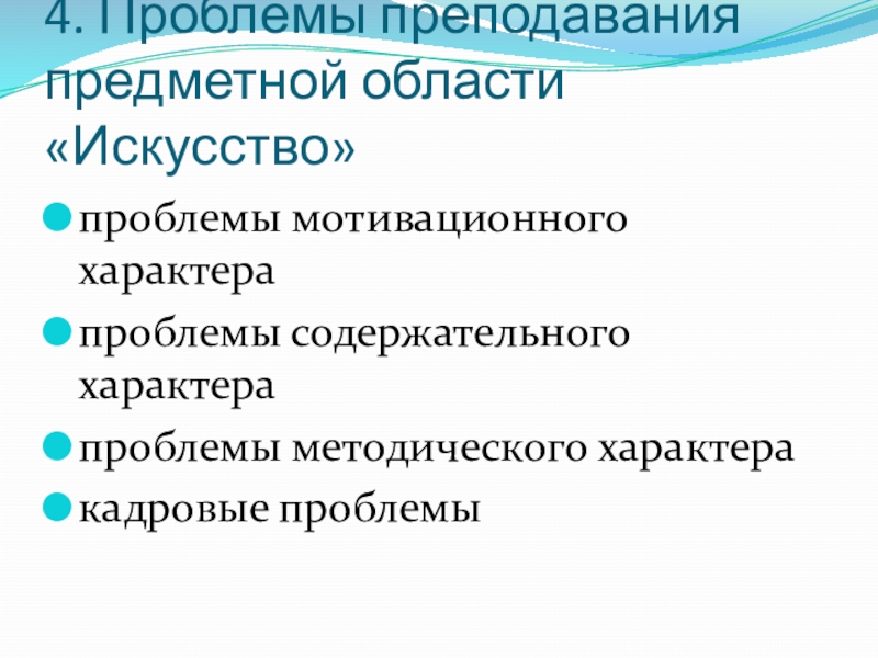 Слайд 74. Проблемы преподавания предметной области «Искусство»