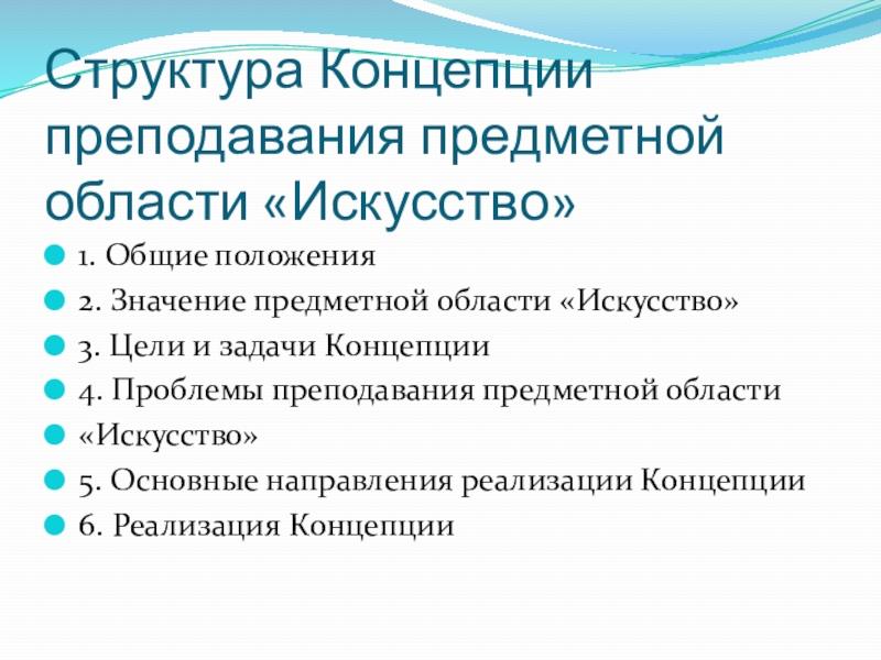 Слайд 2Структура Концепции преподавания предметной области «Искусство»
