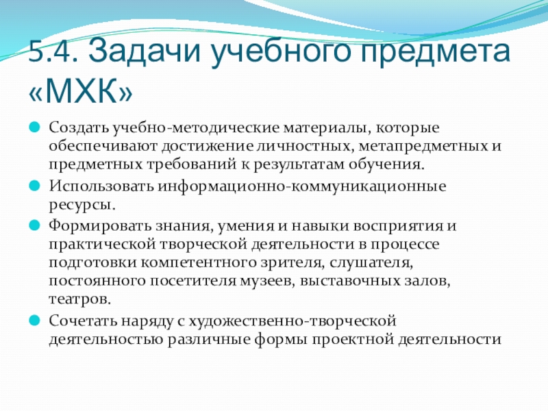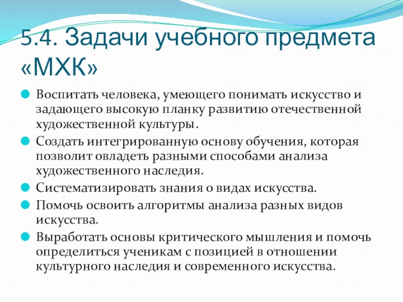 Слайд 205.4. Задачи учебного предмета «МХК»