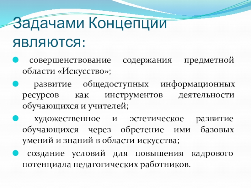 Настоящая Концепция преподавания предметной области «Искусство» представляет собой систему