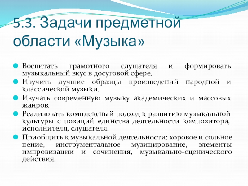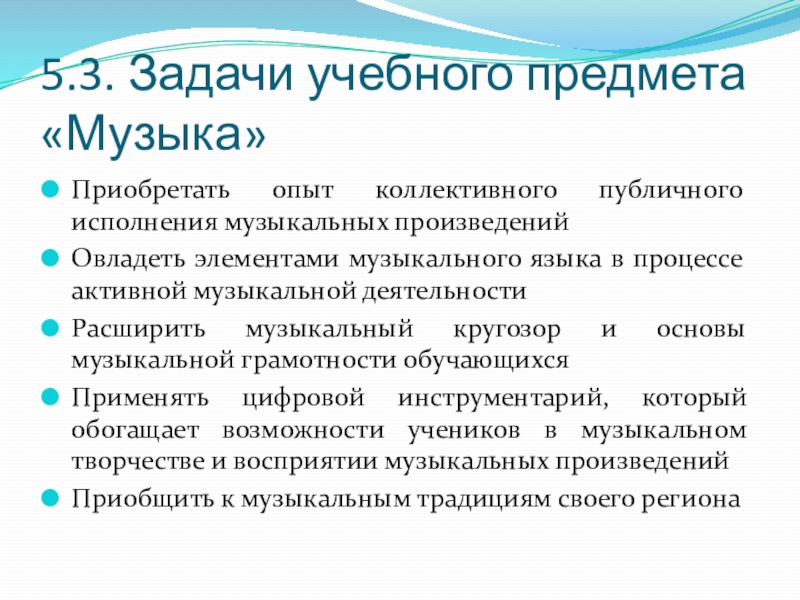 Слайд 175.3. Задачи учебного предмета «Музыка»