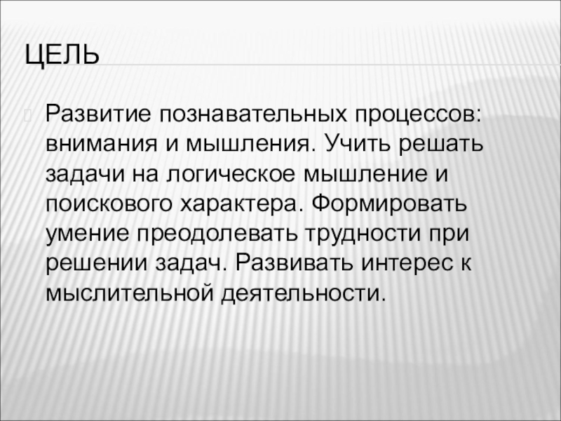 Развитие познавательных процессов: внимания и мышления. Учить решать задачи на логическое