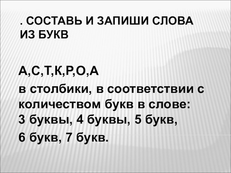 Слайд 8. СОСТАВЬ И ЗАПИШИ СЛОВА ИЗ БУКВ