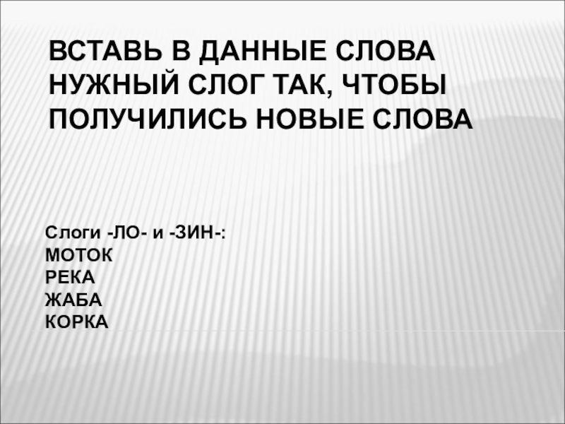 Слайд 9ВСТАВЬ В ДАННЫЕ СЛОВА НУЖНЫЙ СЛОГ ТАК, ЧТОБЫ ПОЛУЧИЛИСЬ НОВЫЕ СЛОВА