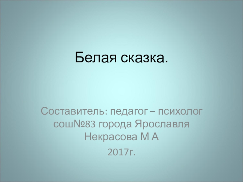 Белая сказка.Составитель: педагог – психолог сош№83 города Ярославля Некрасова М А 2017г.