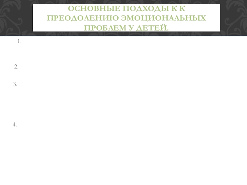 Основные подходы к к преодолению эмоциональных проблем у детей.