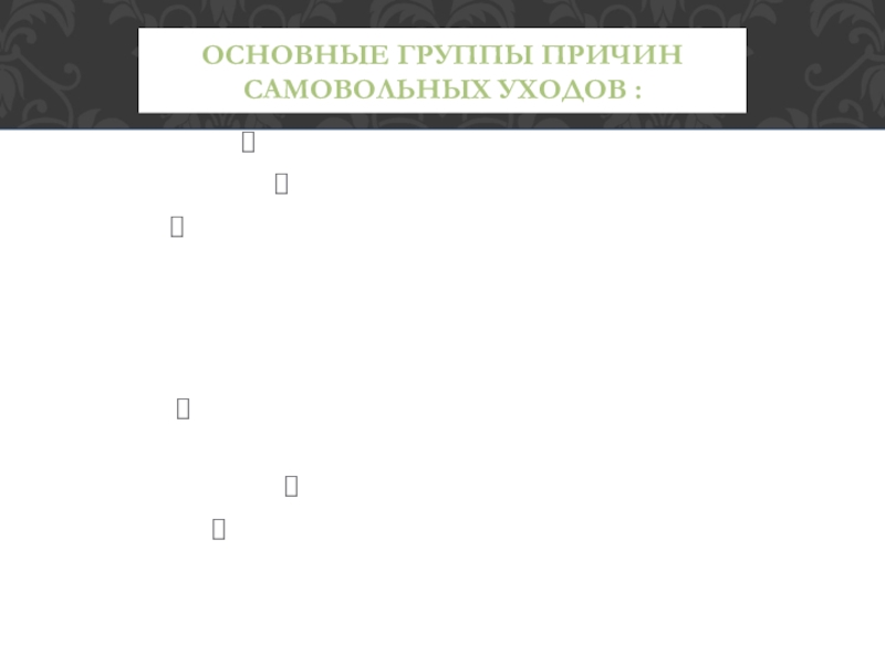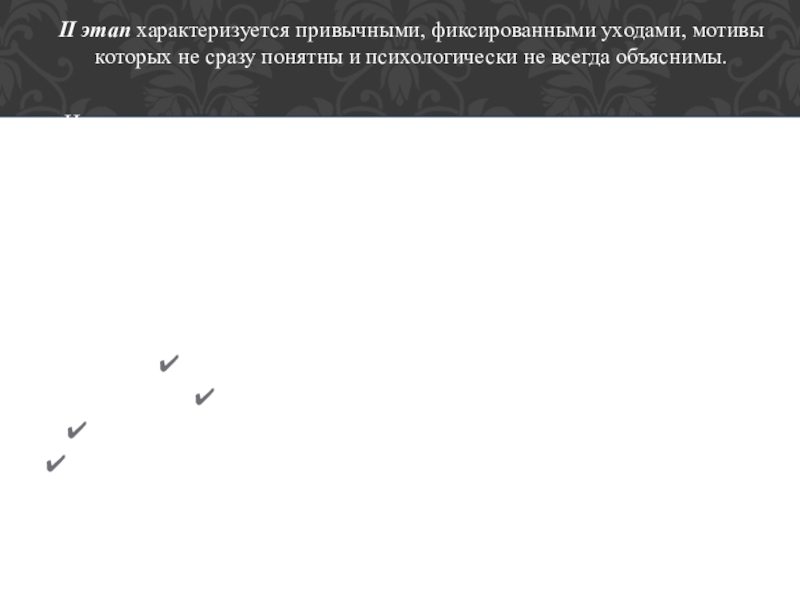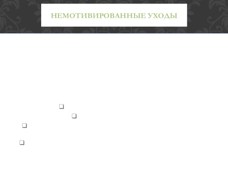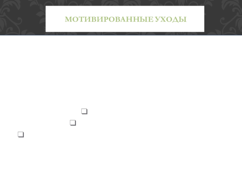 возникает без понятных психологических мотивов. Более часто обусловлены возникающим время от времени настроением дисфорического характера (негативным эмоциональным состоянием раздражительности или озлобленности) и появлением острого стремления к освобождению от стесняющего режима, к перемене обстановки
