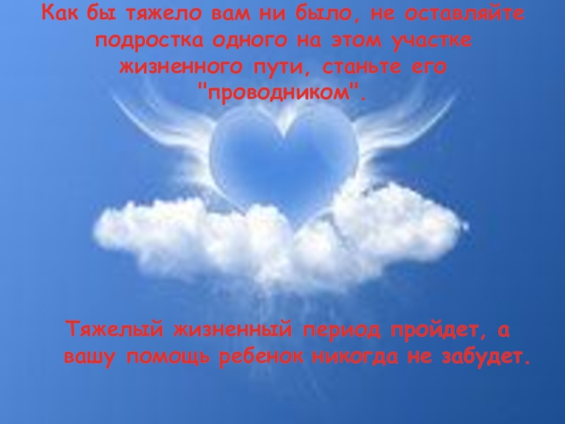 Тяжелый жизненный период пройдет, а вашу помощь ребенок никогда не забудет.
