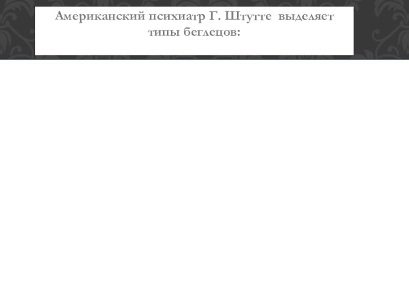 Американский психиатр Г. Штутте выделяет типы беглецов: