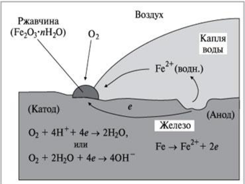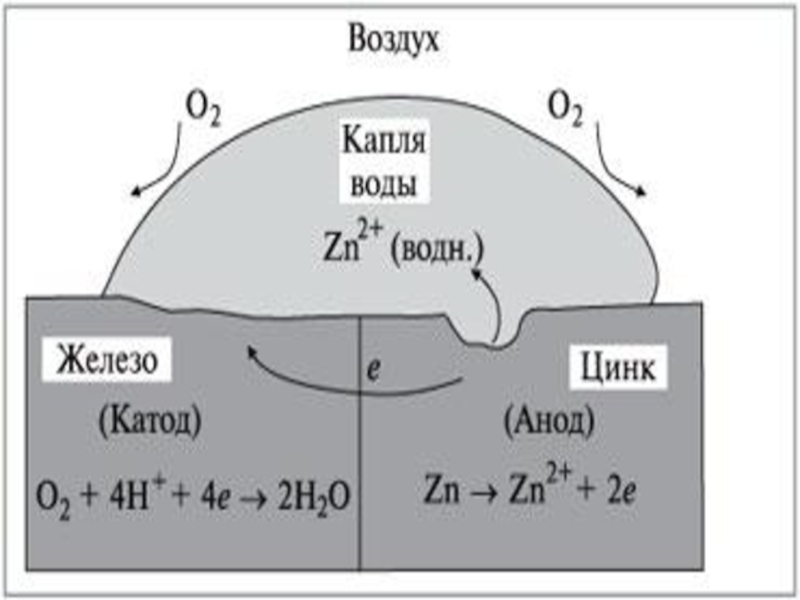 Электрохимическая коррозия возникает в результате работы множества макро- или микрогальванопар в металле, соприкасающемся с электролитом