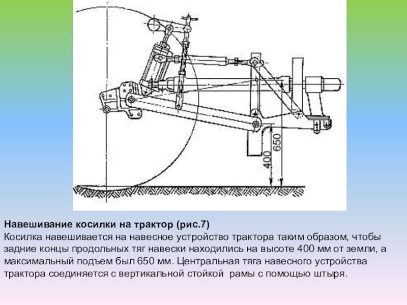 Слайд 39Навешивание косилки на трактор (рис.7)