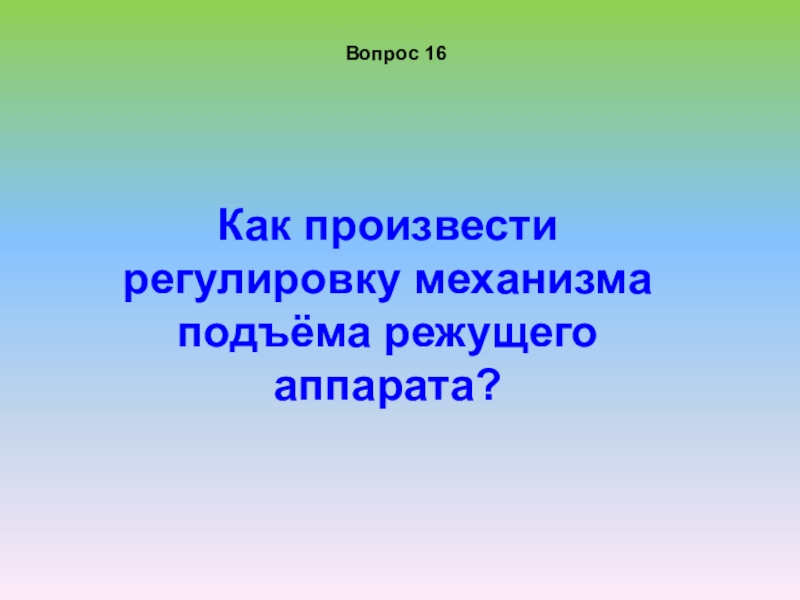 Слайд 81Регулировка механизма подъёма режущего аппарата.