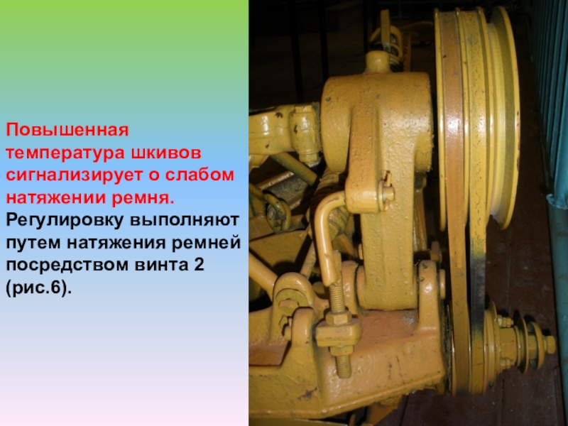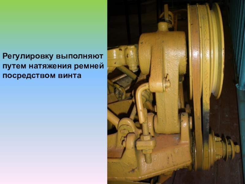 Слайд 75Регулировку выполняют путем натяжения ремней посредством винта
