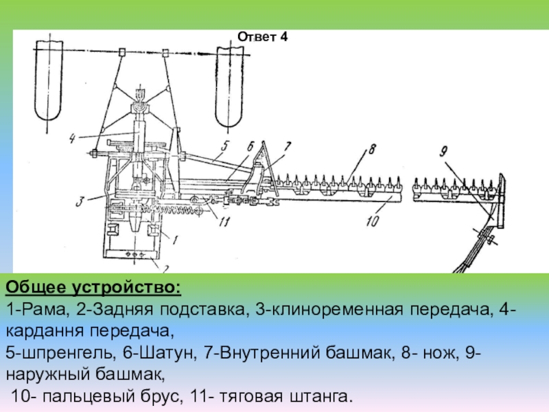 1-Рама, 2-Задняя подставка, 3-клиноременная передача, 4-кардання передача,