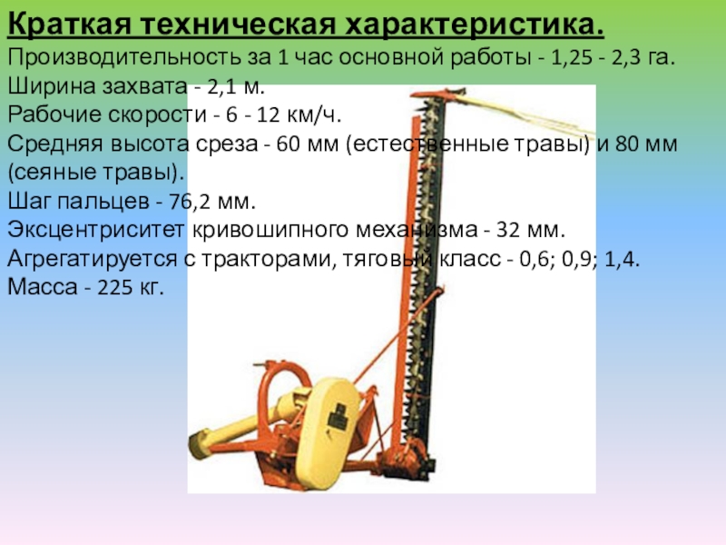 Слайд 49КС-2,1 –косилка скоростная, ширина захвата косилки 2,1м.