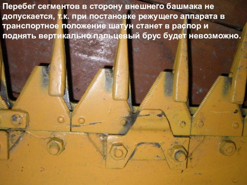 Слайд 19Вынос внешнего башмака - в работе режущий аппарат должен двигаться фронтально.