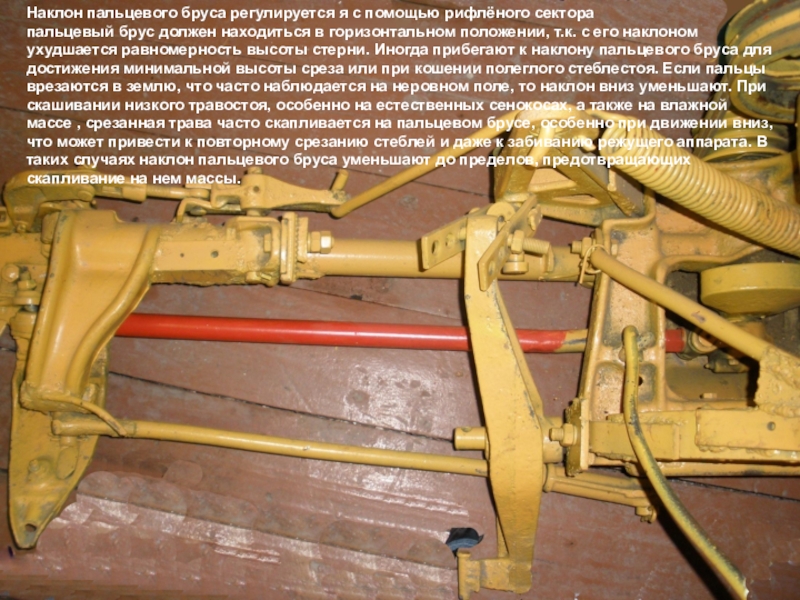 Слайд 66Наклон пальцевого бруса регулируется я с помощью рифлёного сектора