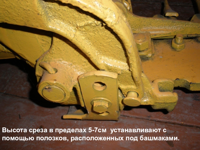 Слайд 20Высота среза в пределах 5-7см устанавливают с помощью полозков, расположенных под