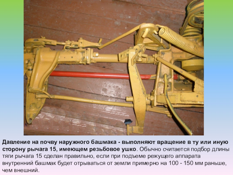 Слайд 83Давление на почву наружного башмака - выполняют вращение в ту или