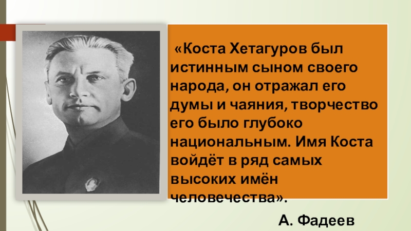 «Коста Хетагуров был истинным сыном своего народа, он отражал его думы и чаяния, творчество его было
