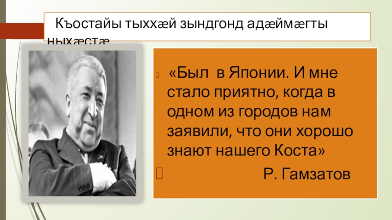 Къостайы тыххæй зындгонд адæймæгты ныхæстæ «Был в Японии. И мне стало приятно, когда в одном из