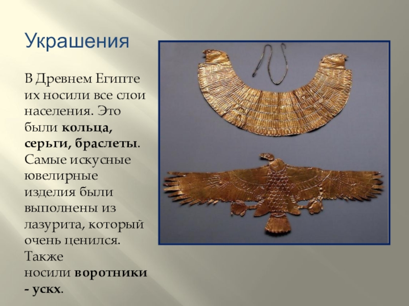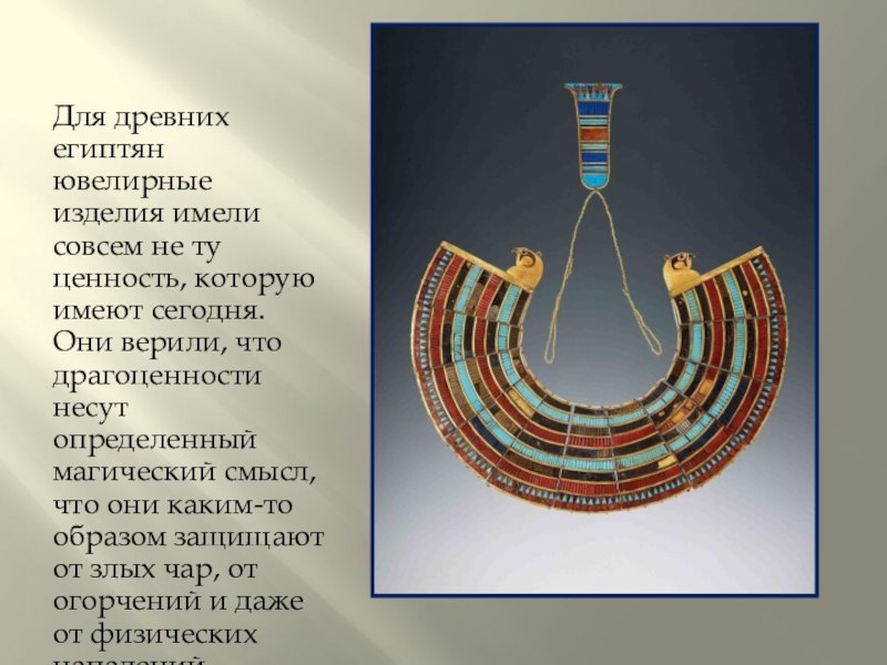 Слайд 22Для древних египтян ювелирные изделия имели совсем не ту ценность, которую