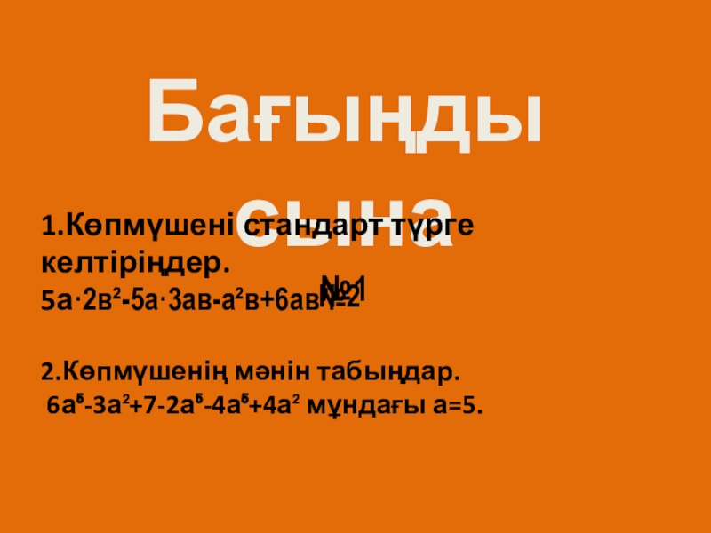 1.х=2а²-3ав-в²,у=-а²+2ав+в²,z=4а²+2ав болса,онда х+у+z өрнегінде х,у,z айнымалыларын алмастырып,шыққан көп мүшені ықшамдаңдар.