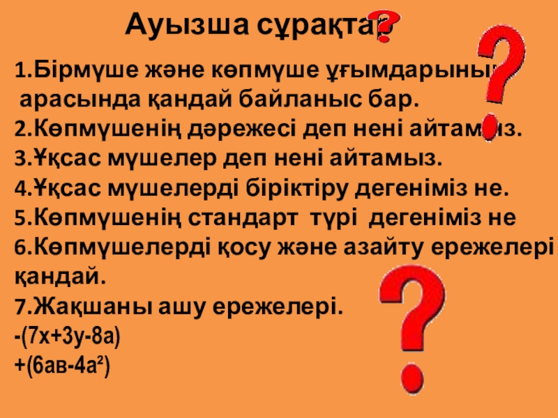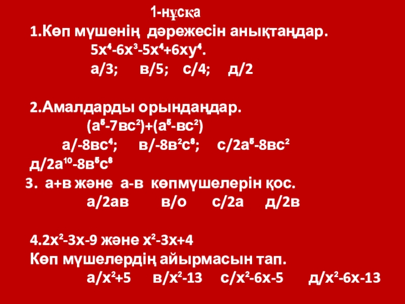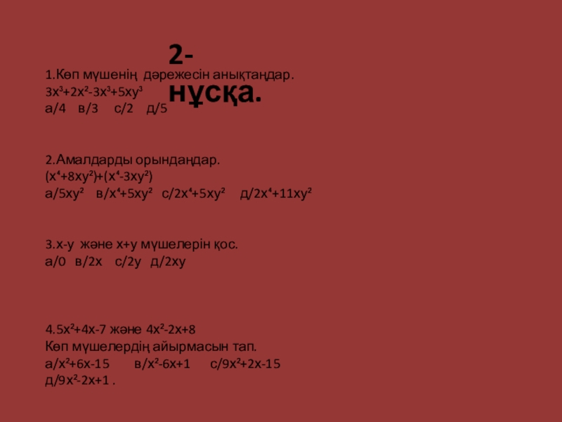 2.А-ның орнына қандай көпмүшені қойғанда теңдік теңбе –теңдікке айналады.