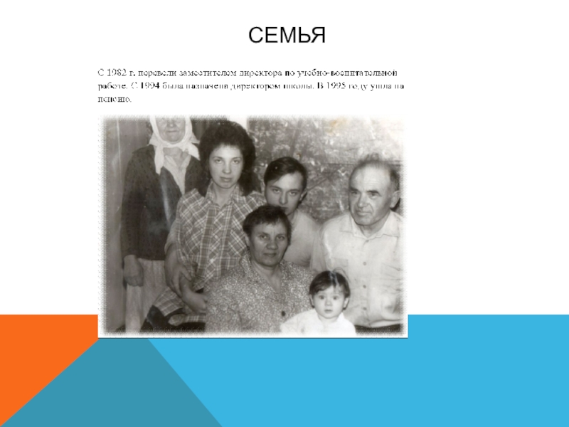 давали чай с кусочком сахара и яичко. В 1949 году пошла в 1 класс – в Пановскую начальную школу. С 15 августа 1963 года работала старшей пионервожатой, с 1970 г. перевели на должность учителя биологии.