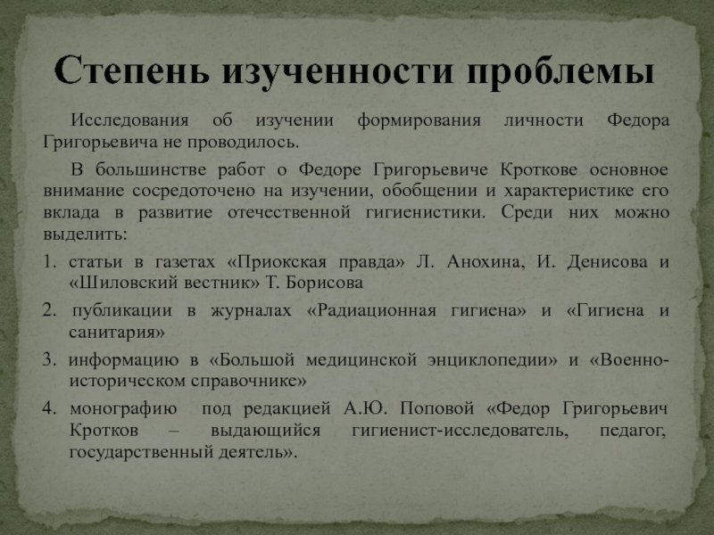 Степень изученности проблемы