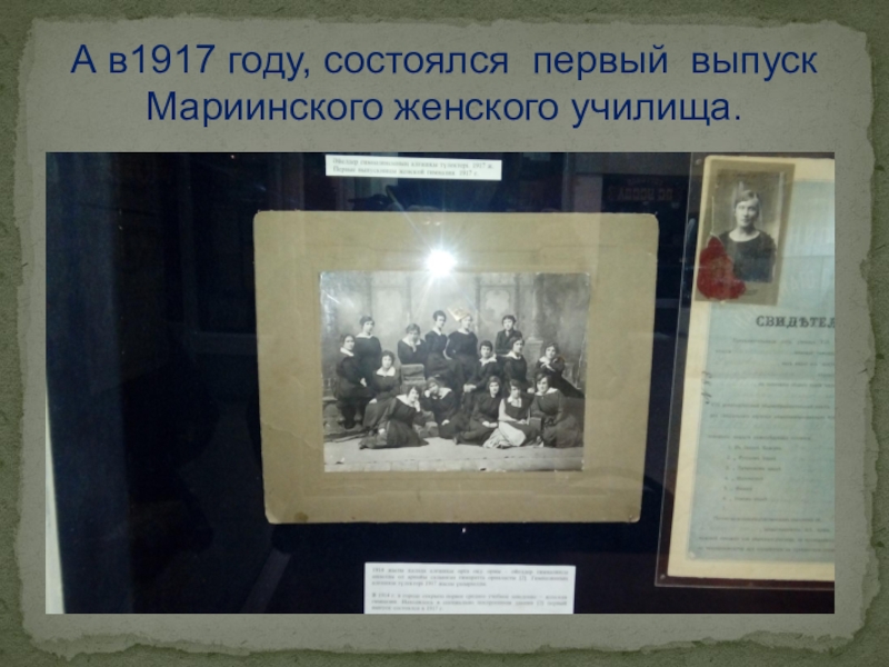 Слайд 12А в1917 году, состоялся первый выпуск Мариинского женского училища.