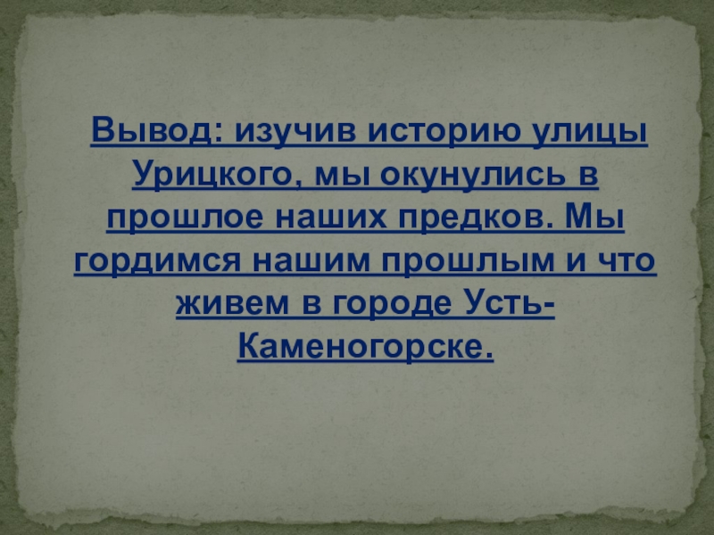 Слайд 21Вывод: изучив историю улицы Урицкого, мы окунулись в прошлое наших предков.