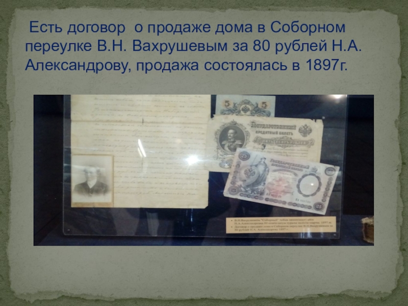 Слайд 8 Есть договор о продаже дома в Соборном переулке В.Н. Вахрушевым